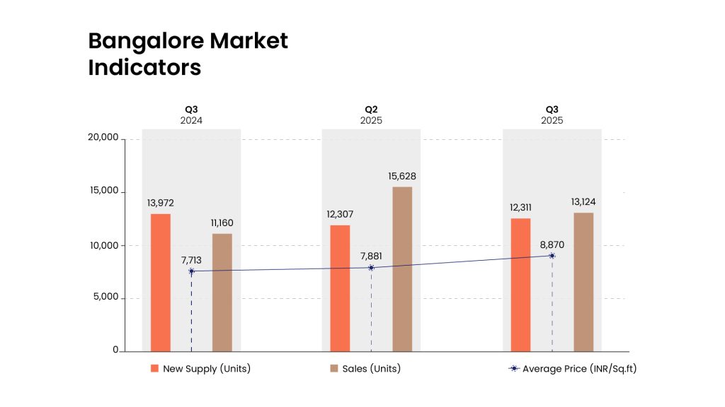 Bangalore’s real estate market is not collapsing—it is realigning. After a period of accelerated growth, the market is transitioning into a phase of consolidation marked by disciplined pricing, measured supply, and more informed buyers.