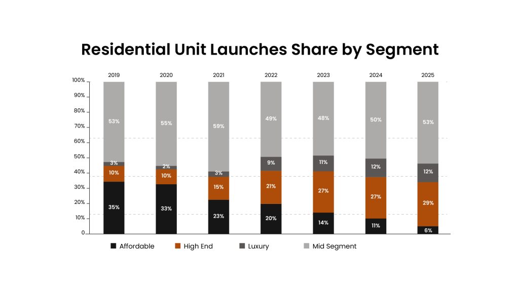 The city clocked a record 12,149 unit launches in Q4 2025 alone, marking a 16% year-on-year increase. What’s notable is the consistency: quarterly launches stayed above the 12,000-unit mark through the year, underlining the market’s depth. Festive-season demand only added fuel to this momentum.
